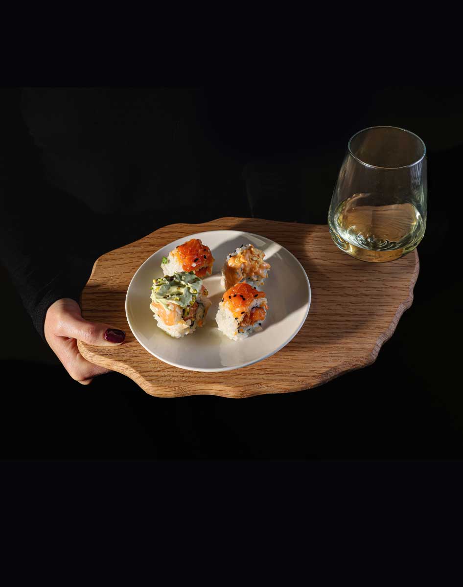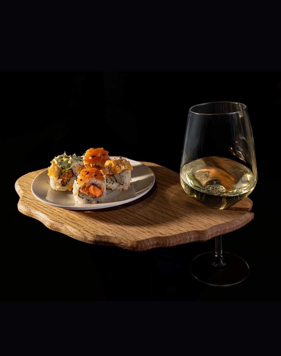 Vassoio in legno con porta bicchiere, funzionale ed elegante. Pensato per essere utilizzato principalmente per eventi o happy hour, nasce per consentire alle persone di poter tenere, in una sola mano, il proprio vassoio e il calice che viene accolto dalla scanalatura presente nel vassoio stesso. La sua forma arrotondata e irregolare le rende più sinuoso e leggero, caratterizzandolo per un aspetto autentico e non seriale.